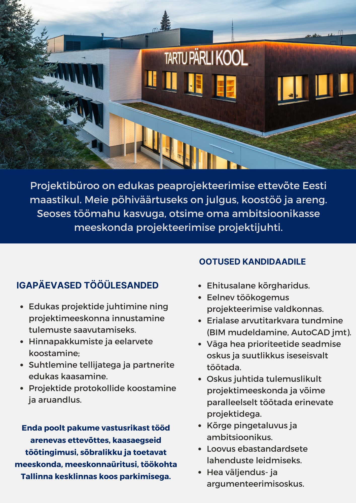 Projektibüroo OÜ on hoonete projekteerimise ja seadustamisega tegelev ettevõte, kes kuulub Eesti kolme suurima peaprojekteerimisega (hoonete ja rajatiste projekteerimisega) tegeleva ettevõtte hulka. Sealhulgas ettevõtte teenuste portfelli kuuluvad ekspertiisid, omanikujärelvalve ja tellija konsultatsioonid.